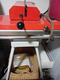 Pressa per stirare perfettamente funzionante con cestone in vimini. Larghezza 68 cm x 1,25 di altezza.