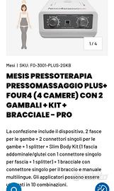 🩺 Pressomassaggio professionale MESIS Pressomassaggio Plus+ – con accessori e garanzia 🩺 Apparecchio per pressomassaggio professionale MESIS modello Pressomassaggio Plus+, pari al nuovo, utilizzato pochissimo. Lo vendo solo perché non ho tempo di utilizzarlo, ma è davvero fantastico ed efficace. ✅ Inclusi accessori originali: 2 gambali 1 fascia addominale Dotato di regolazione della pressione (mmHg) e timer, semplice e intuitivo da utilizzare. Struttura solida, con maniglia integrata per un facile trasporto. 🔒 Ancora 14 mesi di garanzia (acquistato da pochi mesi). Perfetto per trattamenti drenanti, migliorare la circolazione e il benessere generale. 🔹 Marca: MESIS 🔹 Modello: Pressomassaggio Plus+ 🔹 Stato: praticamente nuovo 🔹 Accessori inclusi: 2 gambali + fascia addominale 🔹 Garanzia residua: 14 mesi Un’occasione imperdibile rispetto al nuovo 💎