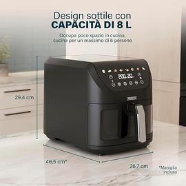 Design salvaspazio: Il Princess SlimFry Airfryer si adatta perfettamente a qualsiasi piano di lavoro, offrendo una capienza di 8L senza ingombrare la cucina.