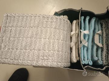 Si vende unitamente al suo contenitore per preparare la soluzione da applicare sui panni di pulizia e il bauletto con tutti i panni di pulizia.