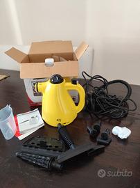 pulitore con getto del vapore ottimo di 3.5 bar. 1000 w con 8 accessori tutti utilizzabili. usato forse 2/3 volte e da qualche anno non lo uso più e rimasto sempre nella sua scatola la quale ha qualche segno di sporco. funziona benissimo e tutti gli accessori sono in scatola.