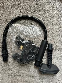 Pulitore a vapore, colore bianco, potenza 1500 W, mai usato e in perfette condizioni. Pieghevole e facile da riporre. Ideale per la pulizia di superfici dure, divani e mobili imbottiti, senza bisogno di prodotti chimici.