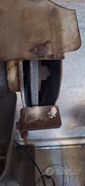 Presenta due diverse ruote abrasive: una spazzola metallica sul lato sinistro e una mola tradizionale con protezione sul lato destro.