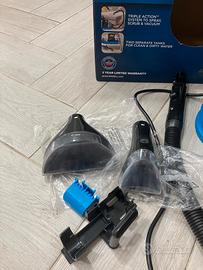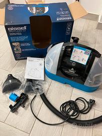 Pulitore portatile per tappeti, moquette e tappezzeria usato 3 volte in tutto (marca Bissell). Detergente compreso (mezzo flacone). Dotato di doppio serbatoio per acqua pulita e sporca. Su Amazon attualmente a EUR 179.99.