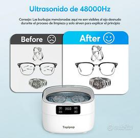 Pulitore a ultrasuoni professionale per la pulizia di occhiali, gioielli, orologi, anelli e protesi dentarie. - Capacità: 750 ml - Frequenza: 48 kHz - Colore: Bianco