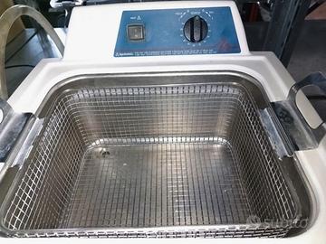 Pulitrice ad ultrasuoni Bransonic Branson 5510E MTH riscaldata con timer. Perfettamente funzionante e testata. Potenza di pulizia di precisione: la pulizia a ultrasuoni è più veloce e sicura di qualsiasi altro metodo. Strofinare, immergere e usare il vapore non si avvicinano nemmeno. È abbastanza potente da rimuovere oli e cere pesanti, abbastanza penetrante da defluire i circuiti stampati, ma allo stesso tempo abbastanza delicata da pulire piccoli assemblaggi di precisione. Le onde sonore ultrasoniche che si muovono attraverso una soluzione detergente creano un effetto chiamato cavitazione, la rapida formazione e implosione di bolle microscopiche. Il calore migliora il processo. L'azione di pulizia profonda degli ultrasuoni rimuove anche lo sporco e le contaminazioni più ostinate. Branson: pioniere nella pulizia a ultrasuoni. Abbiamo scelto Branson perché i loro pulitori incorporano anni di esperienza nella pulizia a ultrasuoni: - facili da usare e sicuri da riempire - frequenza superiore alla media per una pulizia profonda - meno rumorosi - maggiore durata. Branson 5510 - 9,5 litri MTH: con timer meccanico e riscaldamento con funzione speciale per evitare il surriscaldamento dovuto all'assenza di liquido. • MTH Mechanical Timer, Heat • Tank size mm: 290 x 240 x 150 • Overall size mm: 399 x 371 x 401 • Tank capacity: litres (gal) 9.5 (2 1/2) • Drain and valve kit: Included • Weight: kg (lbs.) 5.9 (13) • Power consumption without heat: W 185 • Power consumption with heat: W 469 • Frequency:KHz 40