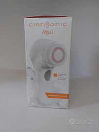 Spazzola per pulizia viso ad ultrasuoni con carica batteria e testina removibile.