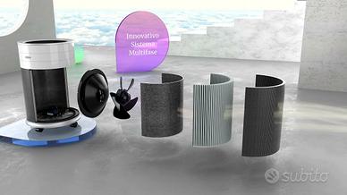 Azione filtrante a 360 gradi, anche in stanze di grandi dimensioni. Si integra perfettamente in ogni tipologia di ambiente ed è facilmente trasportabile.