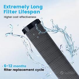 Lunga durata del filtro Il Vortopt F8 sistema di filtrazione dell'acqua da banco è progettato per prestazioni efficienti e durature. Con una durata del filtro di 6-12 mesi, questo purificatore d'acqua offre una filtrazione conveniente e sostenibile, garantendo che l'acqua rimanga pulita e pura per tutta la durata del suo utilizzo. Sostituendo semplicemente il filtro ogni 6-12 mesi, puoi continuare a godere di acqua potabile pulita e sicura.