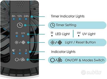 Il filtro dell'aria è dotato di timer programmabile 6H / 12H / 24H tre modalità di temporizzazione, che possono realizzare la comodità dello spegnimento automatico.