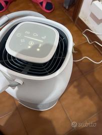 Vendo purificatore d'aria portatile marca Breville, design elegante e compatto. L'oggetto è ottimo condizioni , mai usato o usato pochissimo: presenta ancora l'adesivo di avvertenza giallo originale sulla scocca e la protezione sulla maniglia. Ideale per chi soffre di allergie, per eliminare odori, fumo, polvere e migliorare la qualità dell'aria in casa o in ufficio. ✨ Caratteristiche principali: • Aspirazione a 360°: per una purificazione rapida ed efficiente. • Luce UV (Luce Ultravioletta): aiuta a neutralizzare germi, batteri e virus. • Funzione ION (Ionizzatore): rilascia ioni negativi per rinfrescare l'aria. • Pannello Touch: con Timer, regolazione velocità della ventola e Modalità Notte (silenziosa e con luci spente). • Pratica maniglia: per spostarlo facilmente da una stanza all'altra. ⚠️ Nota bene: come recita l'adesivo giallo, prima del primissimo utilizzo ricordatevi di aprire il fondo e togliere il sacchetto di plastica che avvolge il filtro interno! Completo di alimentatore originale. Vendo per inutilizzo. 📦 Spedizione rapida e ben imballata disponibile. 🤝 Disponibile anche per il ritiro a mano a zona vicino
