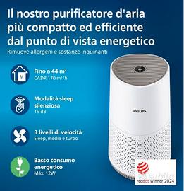 Philips Purificatore d'Aria Serie 600, Ultra Silenzioso ed Efficiente, HEPA Rimuove 99,97% Inquinanti, Ideale per Allergie, Fino a 44m², Controllo App, Bianco (AC0650/10)