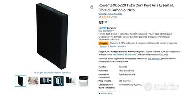 Rowenta XD6220 Filtro 2in1 Pure Aria Essential, Fibra di Carbonio, Nero