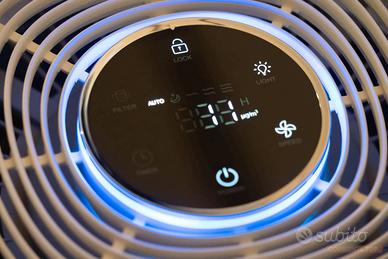 Come nuovo. Info tecniche: Struttura del filtro a tre stadi: il filtro di purificazione dell'aria è costituito da un filtro primario, un filtro HEPA H13 True e un filtro a carbone attivo. Trattiene il 99,97% o più delle particelle fini, fino a 0,3 micron di dimensioni. I purificatori d'aria domestici catturano peli di animali domestici, polline, allergeni, fumo, odori e polvere dall'aria, creando un ambiente sano per te e la tua famiglia. Il dispositivo è dotato di un sensore integrato per il monitoraggio in tempo reale della qualità dell'aria. L'apparecchio regola automaticamente la velocità della ventola in base alla qualità dell'aria. Disponibile con velocità bassa, media e alta. Purificazione dell'aria ad alta efficienza: il valore CAD del purificatore d'aria HEPA è di 250 m³/h, il che significa che può far circolare l'aria 5 volte all'ora (25 mq nella stanza), 4 volte (30 mq nella stanza). Il dispositivo è dotato di prese d'aria su tutti e 4 i lati, quindi è possibile posizionarlo ovunque nella stanza e garantire una circolazione dell'aria a 360 gradi. Colori che indicano la qualità attuale dell'aria : un sensore integrato mostra la qualità dell'aria in tempo reale cambiando i colori della luce; 4 colori diversi indicano diversi livelli di qualità dell'aria (blu, verde, arancione, rosso).