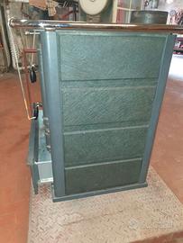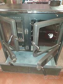 Putage- Cucina a legna Nordica . Stufa come nuova, molto bella con un alto potere riscaldante . Bruciatore interno in ghisa radiante in perfette condizioni . Piestra e cerchi radianti di buon spessore . Acciaio inox per la parte sottopiastra . La stufa è rivestita di pietre ollari con potere di mantenimento del calore . Doppia regolazione per apertura aria e altra regolazione per tiraggio fumi . Ampio forno con termometro . Spazio sottoforno per mantenimento temperature o scaldavivande . In basso cassettone estraibile su guide per deposito legna . Ovviamente cassetto per la rimozione della cenere . La griglia del bruciatore è manovrabile per la caduta della cenere . Chiusure delle porte di alta tenuta . Bocca per carico legna dimensioni 27 x 21 . Scarico fumi diametro 14 . Dimensioni del putage 103 x 66 x 85 . La cucina pesa circa 200 kg. Si trova a piano terra ed è stata pulita e pronta all'uso .