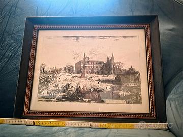 Cornice in legno, intagliata, con serigrafia paesaggio antico