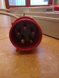 Componenti:È dotato di prese industriali CEE (sia trifase rosse che monofase blu) e prese domestiche standard per collegare utensili e macchinari.