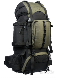 Zaino con telaio interno di capacità pari a 75 L (750 L + sacca di espansione da 5 L); realizzato in poliestere durevole, ideale per escursioni e campeggio