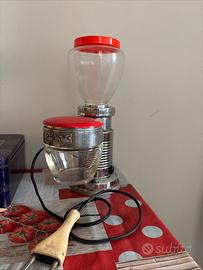 Macina caffè Quick Mill originale anni 50 originale. Da sempre nella mia famiglia. il coperchio del bicchiere seppure marcato quick mill é di un rosso leggermente diverso, sembra nuovo, nonnescludo sia un ricambio di eooca piu recente (magari anni 70). Provato funziona.