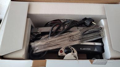 Vendo Klarstein Entrecote-Fondlette, sistema combinato Raclette + Fonduta. Prodotto NUOVO e IMBALLATO, mai tirato fuori dalla scatola. Ideale per cene in compagnia, permette di fare grigliata, raclette e fonduta contemporaneamente. Caratteristiche: Modello 2-in-1: Piastra grill superiore con pentola per fonduta integrata. Raclette: La parte inferiore con le padelline per sciogliere il formaggio. Potenza: 1100 Watt (si scalda subito). Capienza: 8 Persone (include 8 padelline). Pentola fonduta da 1 litro con coperchio paraspruzzi. Vendo per inutilizzo (regalo doppio). Prezzo di listino oltre 80€. Vendo a 39€ (risparmiate e avete un prodotto nuovo).