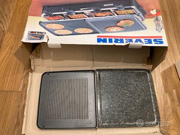 Alluminio Pressofuso – Metà superficie del grill è invece realizzato in alluminio pressofuso antiaderente, per una cucina salutare e senza grassi, adatta specialmente alla carne e a doppia faccia per grigliatura normale o per 4 piccole crepes o fritelle