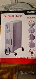Vendo a 40 euro radiatore a olio elettrico con rotelle, come nuovo, usato 2 volte nella stanza degli ospiti, con imballo originale. Ha anche il ventilatore da 400W dove esce l'aria calda.