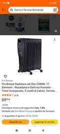 Come da titolo vendo (causa trasloco) Radiatore Pro Breeze ad Olio 2500W, 11 Elementi Riscaldatore Elettrico Portatile - Timer Incorporato, 3 Livelli di Calore, Termostato e Spegnimento Automatico di Sicurezza - Nero