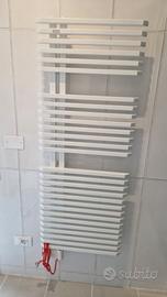 Scaldasalviette elettrico IRSAP modello JAZZ 1290-500, colore bianco, stile moderno, NUOVO mai usato completo di termostato wifi controllabile da remoto tramite app. Dimensioni: Altezza 1290 mm, larghezza 500 mm e profondità di circa 67 mm. Resa Termica: circa 636 Watt Struttura: Composto da 28 tubi orizzontali suddivisi in 2 intervalli (spazi utili per appendere le salviette). Materiale: Acciaio di alta qualità con tubi di sezione rettangolare 20mm x 25mm Valore nuovo oltre 500€, vero affare!