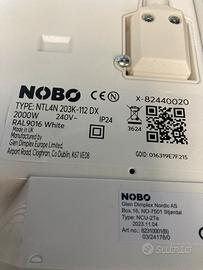 I radiatori elettrici norvegesi NOBO sono un sistema di riscaldamento convezione naturale ed a basso consumo. I corpi riscaldanti sono costituiti da una resistenza con ampia superficie di scambio termico e da un termostato digitale innovativo. Il modello da 2000W è in grado di riscaldare una superficie di massimo 35 m².