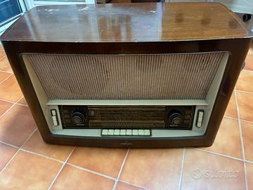 radio d'epoca a valvole Siemens Super M66 con controlli per diverse bande radio, inclusa la UKW (FM) Attualmente sinaccende ma non prende le frequenze. Misure Lunghezza 67 Altezza 44 Profondità 35