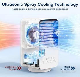Raffreddatore d’aria portatile in condizioni eccellenti, ideale per affrontare il caldo estivo con un sistema più efficace e avanzato rispetto ai ventilatori tradizionali.