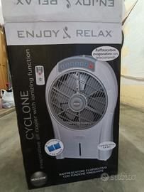 Macom Cyclone Raffrescatore Evaporativo con Funzione Ionizzante - Bianco si mette nella vaschetta acqua con ghiaccio e il ventilatore emana aria fresca