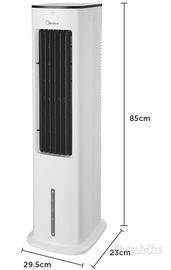 Climatizzatore portatile senza tubo di scarico, ventilatore, umidificatore e purificatore d'aria – 4 funzioni in un unico dispositivo. Grazie al serbatoio dell'acqua da 5 l, l'aria secca viene umidificata durante il raffreddamento. Il climatizzatore Midea colpisce con un consumo energetico estremamente basso e una capacità molto elevata. La funzione di purificazione dell'aria integrata previene peli di animali, sporco e pelucchi nell'aria ed è quindi adatta per chi soffre di allergie