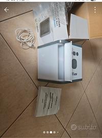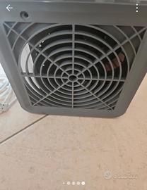 Compatto, silenzioso 5 Watt 3 velocita' alimentazione con USB luce al LED. Acquistato in emergenza per un viaggio in nave ( senza aria condizionata) ed utilzzato 1 sola volta . Non e' un condizionatore ma l' aria della cabina per 4 persone+ cagnolino l' ha rinfrescata.