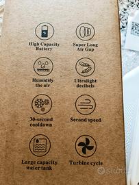 Vendo raffrescatore d'aria portatile con funzione di umidificatore Nuovo come da foto, ricaricabile tramite cavo USB incluso in dotazione, con serbatoio d'acqua incorporata. zona di ritiro Viareggio o spedizione in tutta Italia con il servizio tutto subito.
