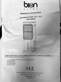 Raffrescatore-ionizzatore con capacità di 12 litri e 3 velocità di funzionamento.
