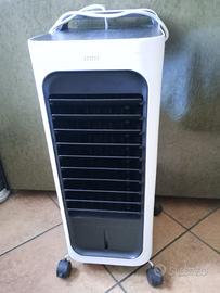 Vendo per inutilizzo pratico rinfrescatore evaporativo Ardes, perfetto per tutte le stagioni. È un dispositivo multifunzione compatto e facile da spostare grazie alle ruote integrate. Caratteristiche principali: • Modalità Estate (Cooler): Rinfresca l'aria in modo naturale utilizzando acqua o siberini (ghiaccioli) nell'apposito serbatoio. Molto più efficace di un ventilatore comune. • Modalità Inverno (Heat): Funziona come potente termoventilatore con due livelli di potenza (Heat 1 e Heat 2) per scaldare rapidamente la stanza. • Funzione Swing: Alette oscillanti per distribuire l'aria uniformemente in tutta la stanza. • 3 Velocità di ventilazione: Low, Middle, High. • Termostato integrato: Indicatori LED per monitorare la temperatura impostata (20°C, 25°C, 30°C). • Portatile: Dotato di ruote resistenti e maniglia superiore per trasportarlo facilmente da una stanza all'altra.