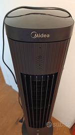 MIDEA RAFFREDDATORE AD ARIA - alto 40 Pollici Si tratta di una colonnina con sul retro un cassetto in cui si inserisce l'acqua con i siberini ghiacciati, e sul davanti ha una ventola silenziosa e fluttuante. In pratica l'aria che viene mossa dalla ventola passa dall'acqua fredda che viene poi vaporizzata raffreddando l'ambiente (così c'è scrittosulle istruzioni ma non si percepisce la vaporizzazione, in compendo è percepibile la differenza di temperatura dell'aria). Ovviamente non fa miracoli, non è un condizionatore, è una specie di ventola con una marcia in più. In un ambiente piccolo la differenza si sente. Pari al nuovo, usato una volta ed inscatolato subito perchè troppo grande per il mio studio Consegna solo a mano: Milano Sud Est