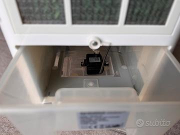 Vendo raffrescatore evaporativo Olimpia Splendid modello Peler 4E in condizioni estetiche e funzionali impeccabili. L’apparecchio è stato trattato con cura maniacale, mantenuto sempre pulito e riposto costantemente al coperto per preservarne l'integrità. Il dispositivo è perfettamente funzionante in ogni sua parte: la pompa dell'acqua lavora correttamente e il motore è silenzioso, senza alcun rumore anomalo durante l'uso. Segnalo che non è presente il telecomando, ma tutte le impostazioni (velocità, oscillazione, timer e modalità raffrescamento) sono comodamente gestibili tramite il pannello touch superiore, che risponde perfettamente ai comandi. È una soluzione pratica, ecologica e a basso consumo per rinfrescare i tuoi ambienti in modo naturale. Il serbatoio è estraibile e facile da pulire, mentre le ruote e la maniglia superiore permettono di spostarlo senza sforzo tra le stanze. L'oggetto viene consegnato già igienizzato e pronto all'uso. Disponibile per ritiro a mano per visione e prova o per spedizione tracciata con imballaggio accurato. Misure 25x25x63