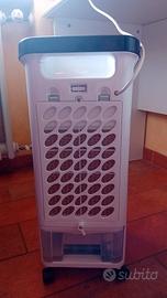 raffrescatore umidificatore ventilatore con la possibilità di mettere nella vaschetta acqua o blocchetti di ghiaccio per rendere più fresca l'aria.
