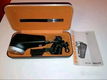 Rasoio anni 50 Philishave modello 7743 con scatola originale, spazzola pulizia, libretto di istruzioni, certificato di garanzia e un buono sconto di 5 Lire che al tempo veniva omaggiato dal venditore. Rasoio usato con inevitabili segni del tempo/d'usura, comunque funzionante. La scatola non è ben messa, riporta evidenti difetti. Euro 25.
