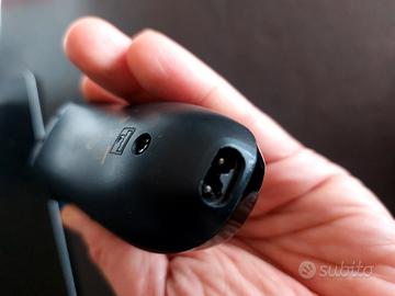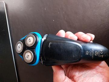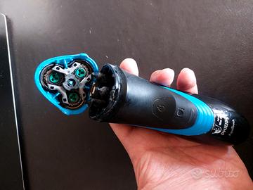 rasoio elettrico per barba con 3 testine con funzione wet and dry (si può utilizzare anche con acqua / sapone o sotto la doccia). usato pochissimo. nota bene: manca carica batterie da acquistare.