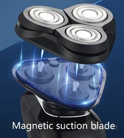 Ha una batteria al litio da 600 mAh, che consente di avere un uso senza interruzioni per 80 minuti con una carica completa in 1 ora, include cavo di ricarica. Include una testina di rasatura rotante con tre testine flottanti con lame in titanio.