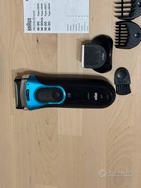 Vendo rasoio elettrico Braun Series 3 ProSkin (modello 3080s) in ottime condizioni e perfettamente funzionante. È un modello Wet & Dry, quindi utilizzabile sia a secco che sotto l'acqua o con schiuma da barba. Il rasoio è stato pulito e igienizzato accuratamente. La batteria tiene ancora molto bene la carica. Il kit è super completo e include: • Corpo rasoio Series 3 (Blu/Nero). • Testina radente originale. • Testina rifinitore di precisione intercambiabile (per regolare la barba). • Set di 5 pettini distanziatori (per diverse lunghezze di taglio). • Base di ricarica da tavolo. • Caricabatterie originale. • Custodia rigida da viaggio originale Braun. • Sacchetto morbido porta accessori. • Pennellino per la pulizia. • Manuale d'istruzioni.