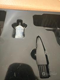 Come da foto vendo rasoio elettrico usato 3/4 volte, in perfette condizioni, con scatola originale, fornita di ogni pezzo; 5 ettini misure 1.5/3/6/10/13mm, custodia lama, ampolla okio con spazzolino.