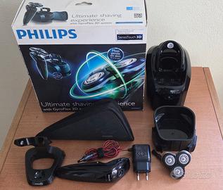 Philips RQ1250CC Serie 9000 Wet & Dry SensoTouch 3D con sistema GyroFlex 3D Display led con 3 livelli indicazione ricarica e sostituzione testine Rifinitore di precisione Sistema Jet Clean di pulizia e ricarica RQ1007 Piedistallo di supporto e ricarica Cavo alimentazione Custodia da viaggio Spazzolina pulizia Scatola originale
