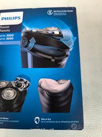 Rasoio Elettrico Philips Serie 3000, usato un paio di volte, si può usare anche sotto l'acqua, ha 3 testine rotanti ed un piccolo pettine elettrico estraibile per i particolari, completo di scatola e di tutti gli accessori.