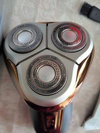 Rasoio da barba elettrico ricaricabile nero e oro. Usato una volta. In perfette condizioni. Lavabile sotto il getto d'acqua.