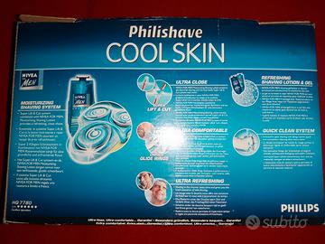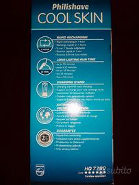 Nuovissimo rasoio Philips COOLSKIN, top di gamma , possibilità di utilizzo con crema Nivea incorporata nel corpo rasoio, possibilità di utilizzo sotto la doccia, si può lavare sotto il rubinetto con acqua corrente.