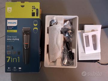 Rasoio regola barba Philips 3000 Series, 7 accessori in 1, con lame autoaffilanti per viso e capelli. Nuovo, mai utilizzato, ancora imbustato, nella scatola originale come da foto.